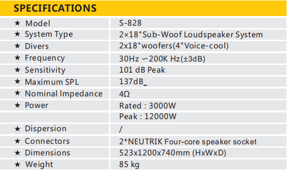 【S-828】雙18寸超低(dī)音揚聲器係統